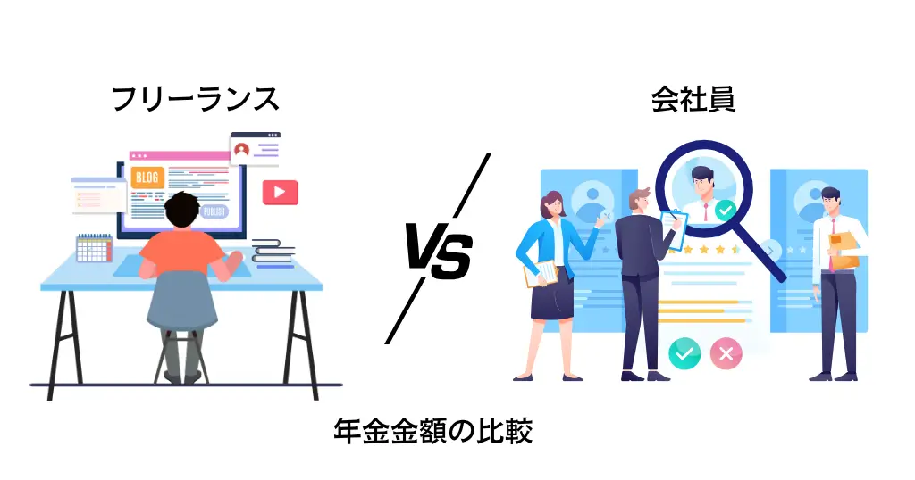 フリーランスと会社員では、将来もらえる年金額にかなりの差があります。実際の数字を使って、どのくらい違うのか見てみましょう。